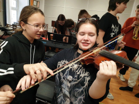 Духовики, струнники, барабанщики и клавишники успешно провели мастер-класс, на котором глорцы превратились в исполнителей на других инструментах оркестра, ощутили волшебство звучания других музыкальных красок.