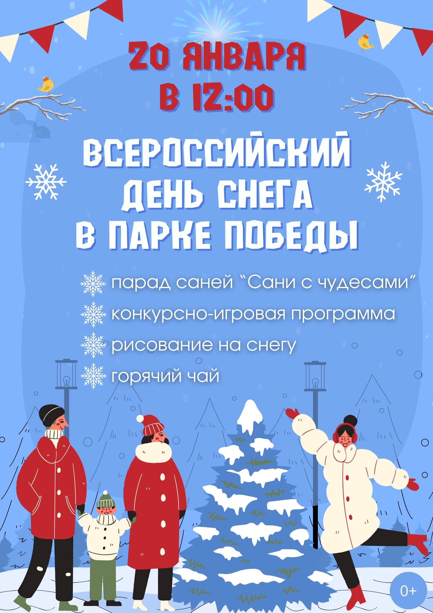 20 января (суббота) 12:00 в Парке Победы Приглашаем насладиться зимней атмосферой и провести время с семьей и друзьями на свежем воздухе!